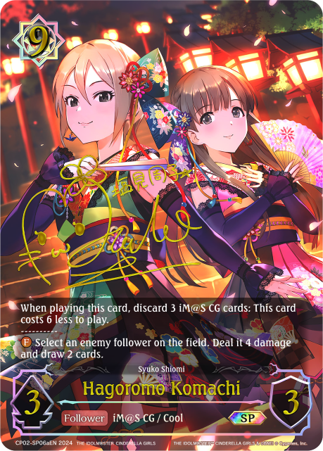 Lorsque vous jouez cette carte, défaussez 3 cartes iM@S CG : cette carte coûte 6 de moins à jouer.